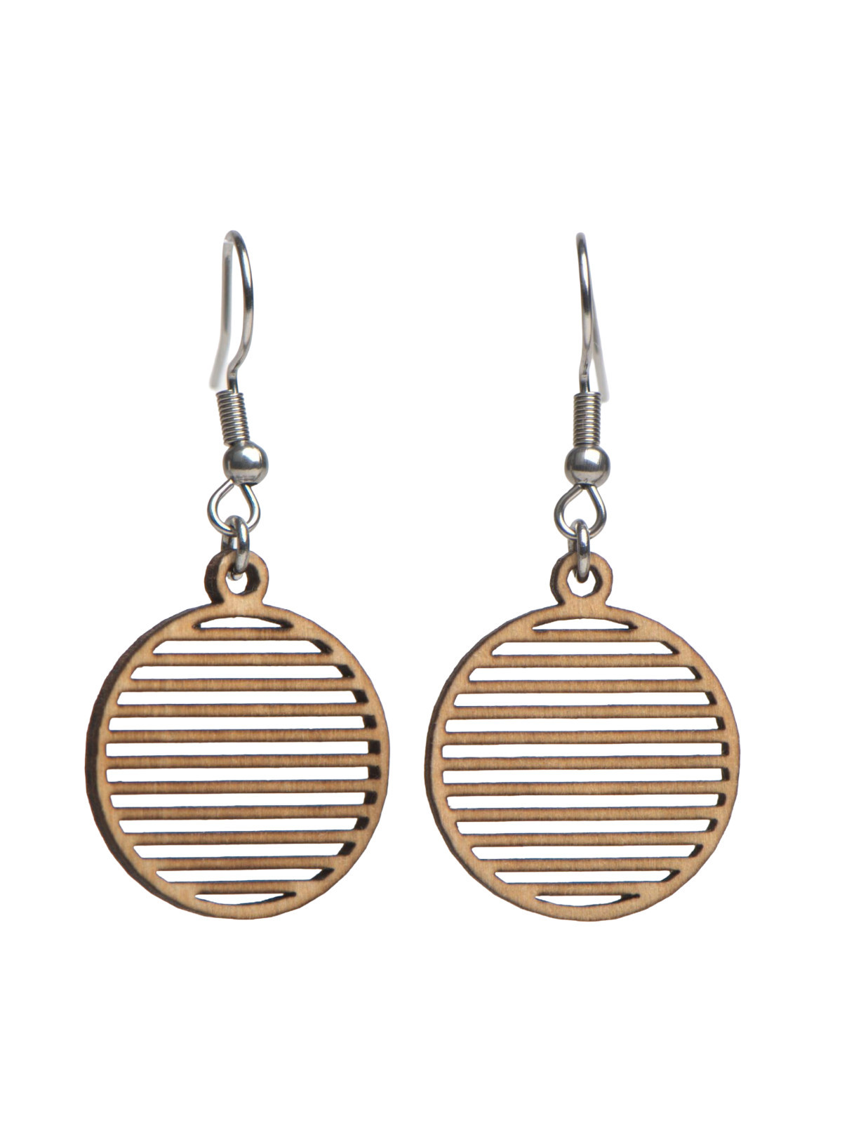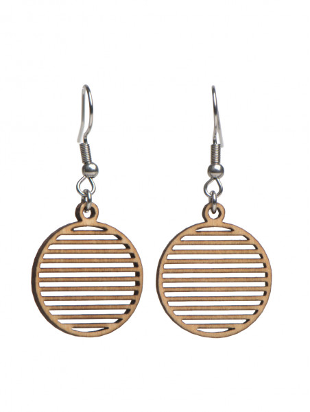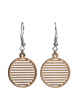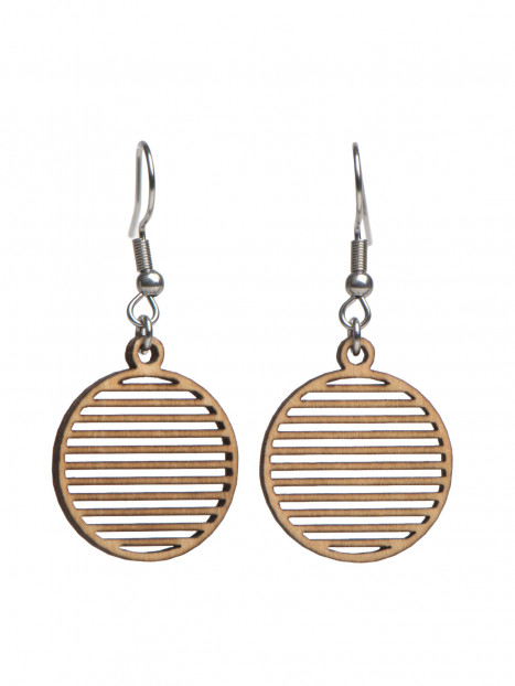 Une paire de boucles d'oreilles rondes, découpées horizontalement.