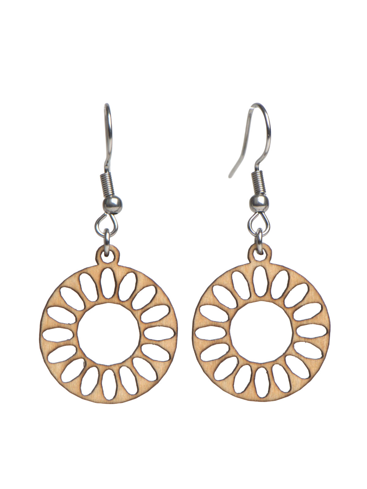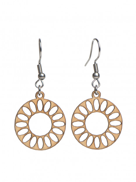 Une paire de boucles d'oreilles en bois d’une finesse incroyable.Un bijou d’élégance et de douceur.