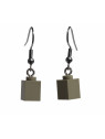 Les boucles d’oreilles beige foncé ou marron vraiment très clair, c’est selon. Une chose est sûre, c’est très discret.